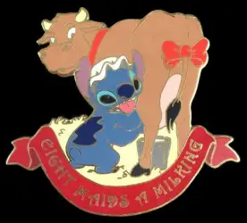 Eight Maids a Milking is a Limited Edition (LE) 100 pin from the Stitch 12 Days of Christmas pin series. It was originally released on , 2004 and was available from Disney Auctions .