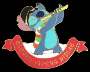 Eleven Pipers Piping is a Limited Edition (LE) 100 pin from the Stitch 12 Days of Christmas pin series. It was originally released on , 2004 and was available from Disney Auctions .