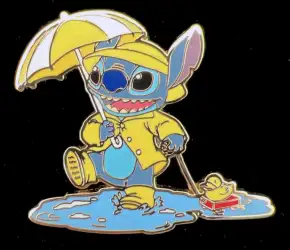 Stitch in raincoat and boots is a Limited Edition (LE) 250 pin from the April Shower pin series. It was originally released on , 2007 and was available from Disney Store US .