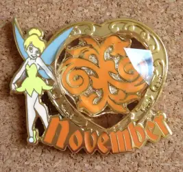 Tinker Bell November is an Open Edition pin from the Tinker Bell's Trinkets pin series. It was originally released on , 2013 and was available from Multiple Sources (WDW, DLR, etc.).