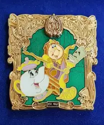Pin features Lumiére , Cogsworth and Mrs. Potts from Beauty and the Beast