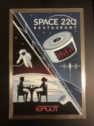 Space 220 Restaurant is a Limited Edition (LE) 250 pin from the EPCOT Poster Series pin series. It was originally released on , 2022 and was available from Walt Disney Imagineering .
