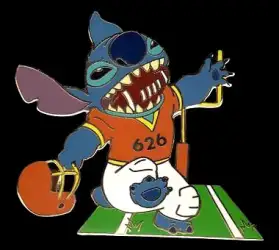 Stitch playing football is a Limited Edition (LE) 100 pin from the Lilo & Stitch pin series. It was originally released on , 2005 and was available from Disney Auctions .