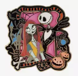 Pin features Jack Skellington and Sally from The Nightmare Before Christmas