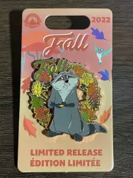 Fall Wreath Meeko is a Limited Release pin from the Disney Parks Seasons - Fall/Autumn pin series. It was originally released on , 2022 and was available from Multiple Sources (WDW, DLR, etc.).
