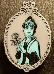 Woman with Rose (Widow Constance Hatchaway) is a Limited Release pin from the The Haunted Mansion Glows in the Dark Mystery Collection pin series. It was originally released on , 2014 and was available from Multiple Sources (WDW, DLR, etc.).