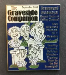The Graveside Companion is a Limited Edition (LE) 2500 pin from the Haunted Mansion Magazines pin series. It was originally released in September, 2010 and was available from Multiple Sources (WDW, DLR, etc.).