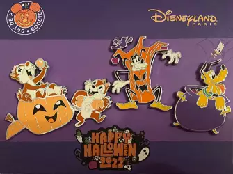 Halloween Booster is an Open Edition 4-pin set from the Halloween 2022 pin series. It was originally released on , 2022 and was available from Disneyland Resort Paris .