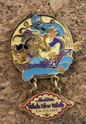 Aladdin, Jasmine & Genie is a Limited Release pin from the Aladdin's Whole New World pin series. It was originally released on , 2005 and was available from Tokyo Disneyland Resort .
