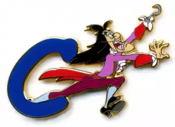 C is for Captain Hook is an Open Edition pin from the 2001 Alphabet Series pin series. It was originally released in May, 2003 and was available from Multiple Sources (WDW, DLR, etc.).
