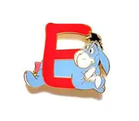 E is for Eeyore is a Limited Edition (LE) 100 pin from the Japan Disney Mall - Disney Character Alphabet 26-Pin Framed Set pin series. It was originally released on , 2006 and was available from Disney Store Japan .