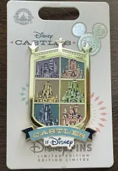 Castles of Disney - Castle Crest is a Limited Edition (LE) 2500 pin from the D23 Expo 2022 pin series. It was originally released on , 2022 and was available from Disney Fan Club .