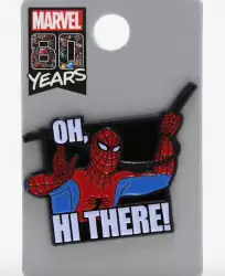 Spider-Man Hi There! is an Open Edition pin from the Marvel 80 Years pin series. It was originally released in October, 2019 and was available from an Officially Licensed Disney trading pin vendor (see description for more information).