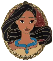 Pocahontas is an Open Edition pin from the 2022 Gold Frame and Glitter Stylized Princess Portraits Collection pin series. It was originally released on , 2022 and was available from Multiple Sources (WDW, DLR, etc.).