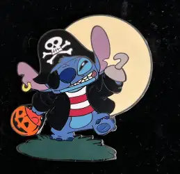 Pirate is a Limited Edition (LE) 100 pin from the Stitch Halloween Set pin series. It was originally released on , 2004 and was available from Disney Auctions .