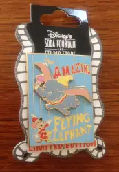 Dumbo the Flying Elephant is a Limited Edition (LE) 300 pin from the Circus Poster pin series. It was originally released in June, 2013 and was available from Disney Studio Store Hollywood / Soda Fountain .