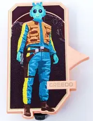 Greedo is a Limited Release pin from the Star Wars Tatooine Mystery pin series. It was originally released on , 2022 and was available from Multiple Sources (WDW, DLR, etc.).