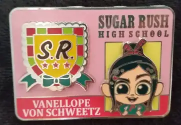 Vanellope Sugar Rush HS ID is a Limited Edition (LE) 400 pin from the Back to School ID Badge pin series. It was originally released on , 2013 and was available from Disney Studio Store Hollywood / Soda Fountain .