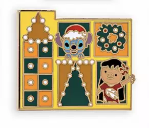 Lilo & Stitch is a Limited Release pin from the it’s a small world Holiday Mystery Pin Set 2022 pin series. It was originally released in November, 2022 and was available from Multiple Sources (WDW, DLR, etc.).