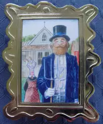American Gothic - Figment and Dreamfinder is a Limited Edition (LE) 300 pin from the WDI Figment Portrait Pins pin series. It was originally released in April, 2008 and was available from Walt Disney Imagineering .