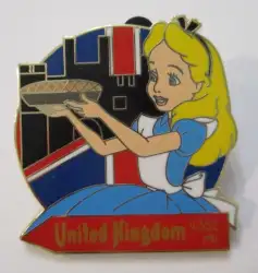 Alice in UK is a Limited Release pin from the EPCOT International Food & Wine Festival 2018 - Mystery Collection pin series. It was originally released on , 2018 and was available from Walt Disney World .