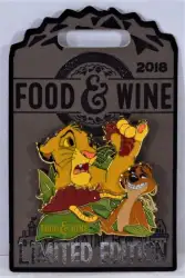 Simba and Timon is a Limited Edition (LE) 4000 pin from the EPCOT International Food & Wine Festival 2018 pin series. It was originally released on , 2018 and was available from Walt Disney World .