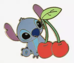 Stitch with Cherries is an Open Edition pin from the BoxLunch - Fruit pin series. It was originally released on , 2022 and was available from an Officially Licensed Disney trading pin vendor (see description for more information).