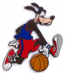 Goofy Dribbling is a Limited Edition (LE) 3000 pin from the Sports Series Boxed Pin Set #2 - Basketball pin series. It was originally released on , 2003 and was available from Disney Store US .