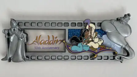 Aladdin 30th Anniversary is a Limited Edition (LE) 250 pin from the Anniversary Film Strip Series pin series. It was originally released on , 2022 and was available from Walt Disney Imagineering .
