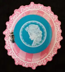 Elsa Macaron is a Limited Edition (LE) 700 pin from the Princess Tea Time pin series. It was originally released on , 2014 and was available from Disneyland Resort Paris .