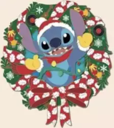 Stitch is a Limited Edition (LE) 400 pin from the Holiday Wreaths pin series. It was originally released in December, 2022 and was available from Disney Employee Center .