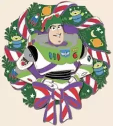 Buzz is a Limited Edition (LE) 400 pin from the Holiday Wreaths pin series. It was originally released in December, 2022 and was available from Disney Employee Center .