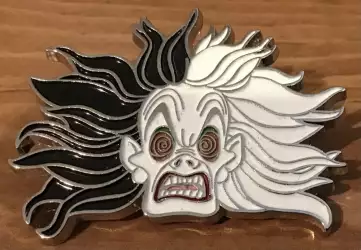 Cruella De Vil is an Open Edition pin from the RP Mini Series pin series. It was originally released on , 2021 and was available from an Officially Licensed Disney trading pin vendor (see description for more information).