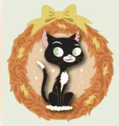 Mittens is a Limited Edition (LE) 400 pin from the Holiday Cat Wreaths Collection pin series. It was originally released on , 2022 and was available from Disney Studio Store Hollywood / Soda Fountain .