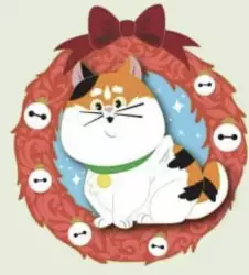 Mochi is a Limited Edition (LE) 400 pin from the Holiday Cat Wreaths Collection pin series. It was originally released on , 2022 and was available from Disney Studio Store Hollywood / Soda Fountain .