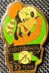 Frontierland - Goofy is a pin from the Disneyland 35th Anniversary pin series. It was originally released in January, 1990 and was available from Disney Store US .