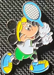 Mickey playing Tennis is a Limited Release pin from the Sports series pin series. It was available from an Officially Licensed Disney trading pin vendor (see description for more information).