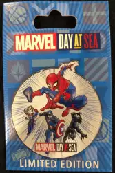 Spider-Man, Captain Marvel, Captain America, and Black Panther is a Limited Edition (LE) 500 pin from the Marvel Day at Sea pin series. It was originally released in January, 2019 and was available from Disney Cruise Line .