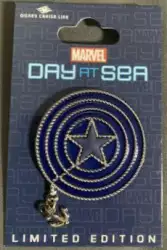 Captain's Shield is a Limited Edition (LE) 500 pin from the Marvel Day at Sea pin series. It was originally released in October, 2017 and was available from Disney Cruise Line .