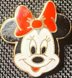 Minnie Head with White Face and Red Bow is an Open Edition pin.