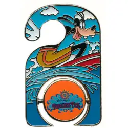 Paradise Pier Hotel - Goofy is a Limited Edition (LE) 1000 pin from the Resorts Do Not Disturb Signs pin series. It was originally released on , 2010 and was available from Disneyland Resort .