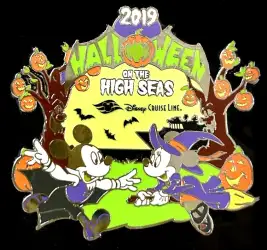 Mickey and Minnie Halloween on the High Seas Disney Cruise Line Exclusive is a Limited Release pin from the DCL Holidays pin series. It was originally released in October, 2019 and was available from Disney Cruise Line .