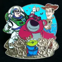 Pin features Little Green Men (Aliens) , Lotso Huggin Bear , Woody and Buzz Lightyear from Toy Story
