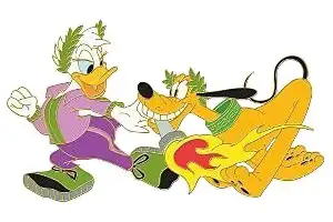 Daisy and Pluto is a Limited Edition (LE) 250 pin from the Olympic series pin series. It was originally released on , 2008 and was available from Disney Store US .