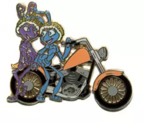 Flik and Princess Atta is a Limited Edition (LE) 250 pin from the Motorcycle series pin series. It was originally released on , 2007 and was available from Disney Store US .