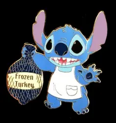 Stitch Holding a Frozen Turkey is a Limited Edition (LE) 250 pin from the Lilo & Stitch pin series. It was originally released on , 2007 and was available from Disney Store US .