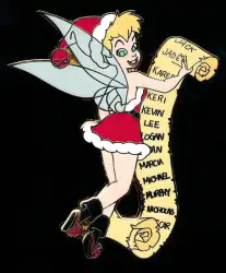 Santa Tinker Bell is a Limited Edition (LE) 300 pin from the Jumbo Holiday series pin series. It was originally released on , 2008 and was available from Disney Store US .