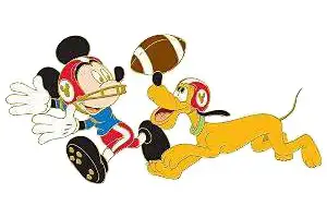 Mickey and Pluto is a Limited Edition (LE) 250 pin from the Football 2008 series pin series. It was originally released on , 2008 and was available from Disney Store US .