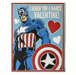 Captain America is an Open Edition pin from the Marvel’s Avengers “Valentines Assemble” Mystery Pin Set pin series. It was originally released on , 2023 and was available from Multiple Sources (WDW, DLR, etc.).