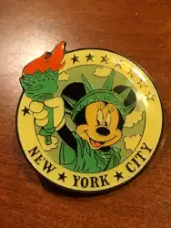 Minnie lady Liberty NYC is a pin from the NY Disney Galleries pin series. It was available from an Officially Licensed Disney trading pin vendor (see description for more information).